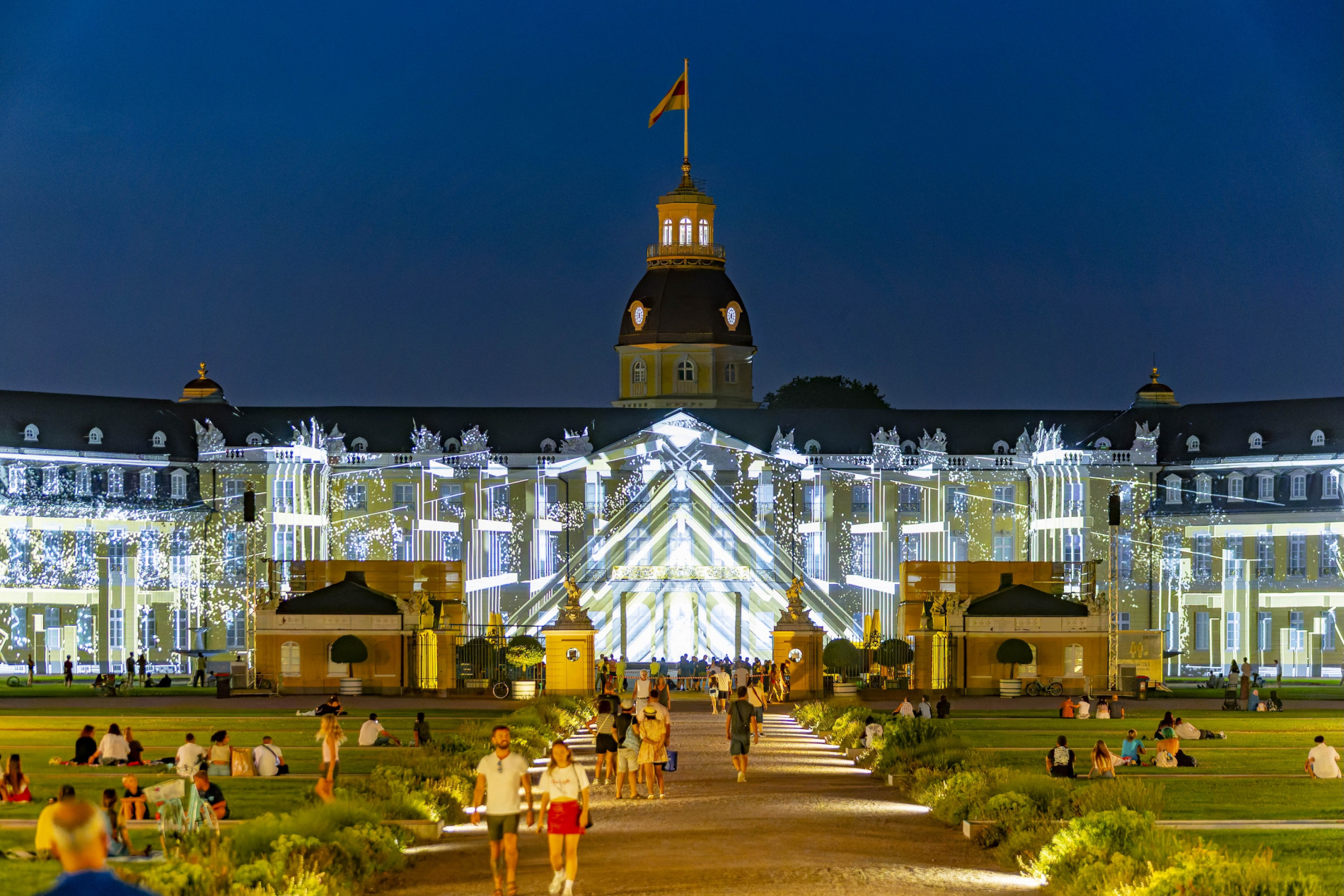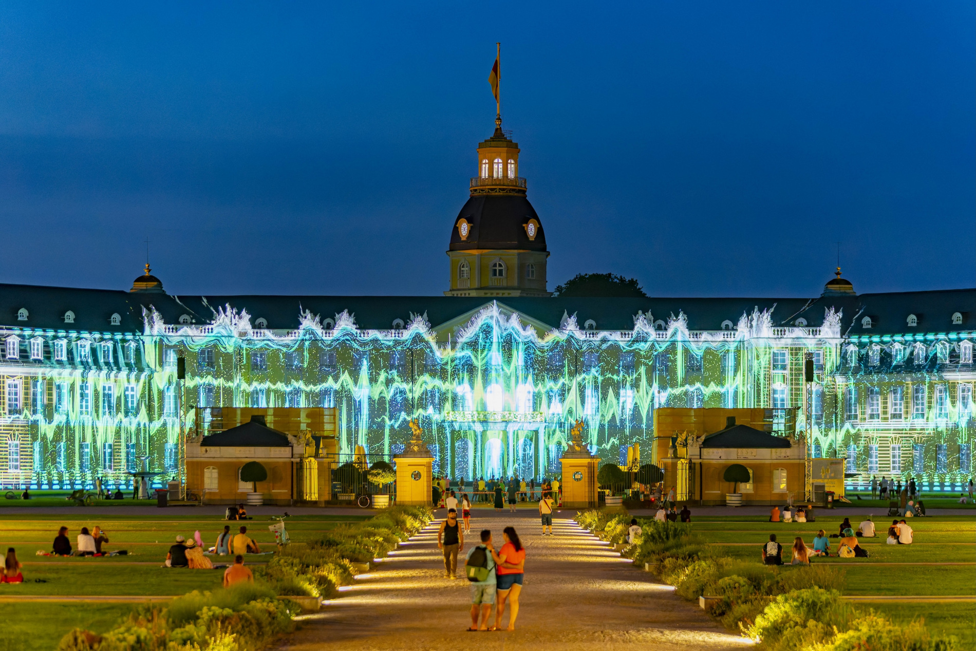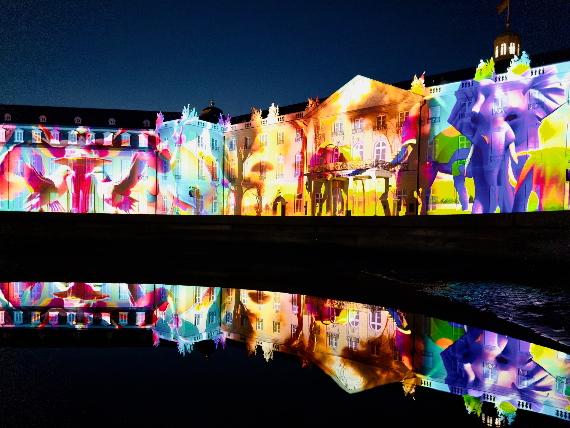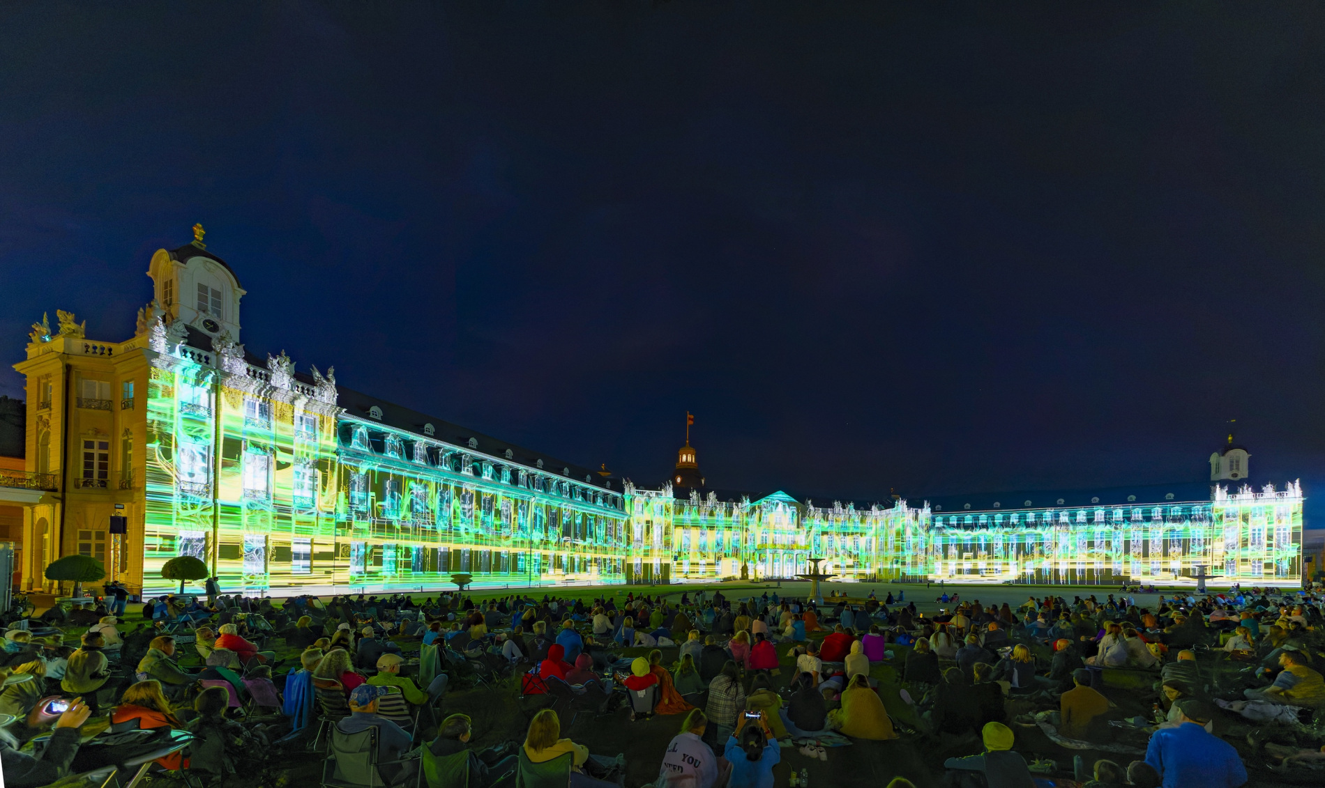Anlässlich des 200-jährigen Jubiläums des KIT Karlsruher Institut für Technologie feierten in diesem Jahr die SCHLOSSLICHTSPIELE unter dem Motto „The Shining Lights of Science“ die Strahlkraft und Bedeutung der Wissenschaft. In eindrucksvollen Bildern zeigten die Projection-Mappings auf der Schlossfassade, wie wissenschaftliche Erkenntnisse und technologische Entwicklungen unsere Welt prägen – physisch wie digital. Wissenschaft hilft uns, die Welt besser zu verstehen – und sie zu gestalten. Die Medienkunst verwandelte die Fassade in einen Raum voller Tiefe und Fantasie. Begleitend dazu verwandelte die Ausstellung Media art is here wieder die