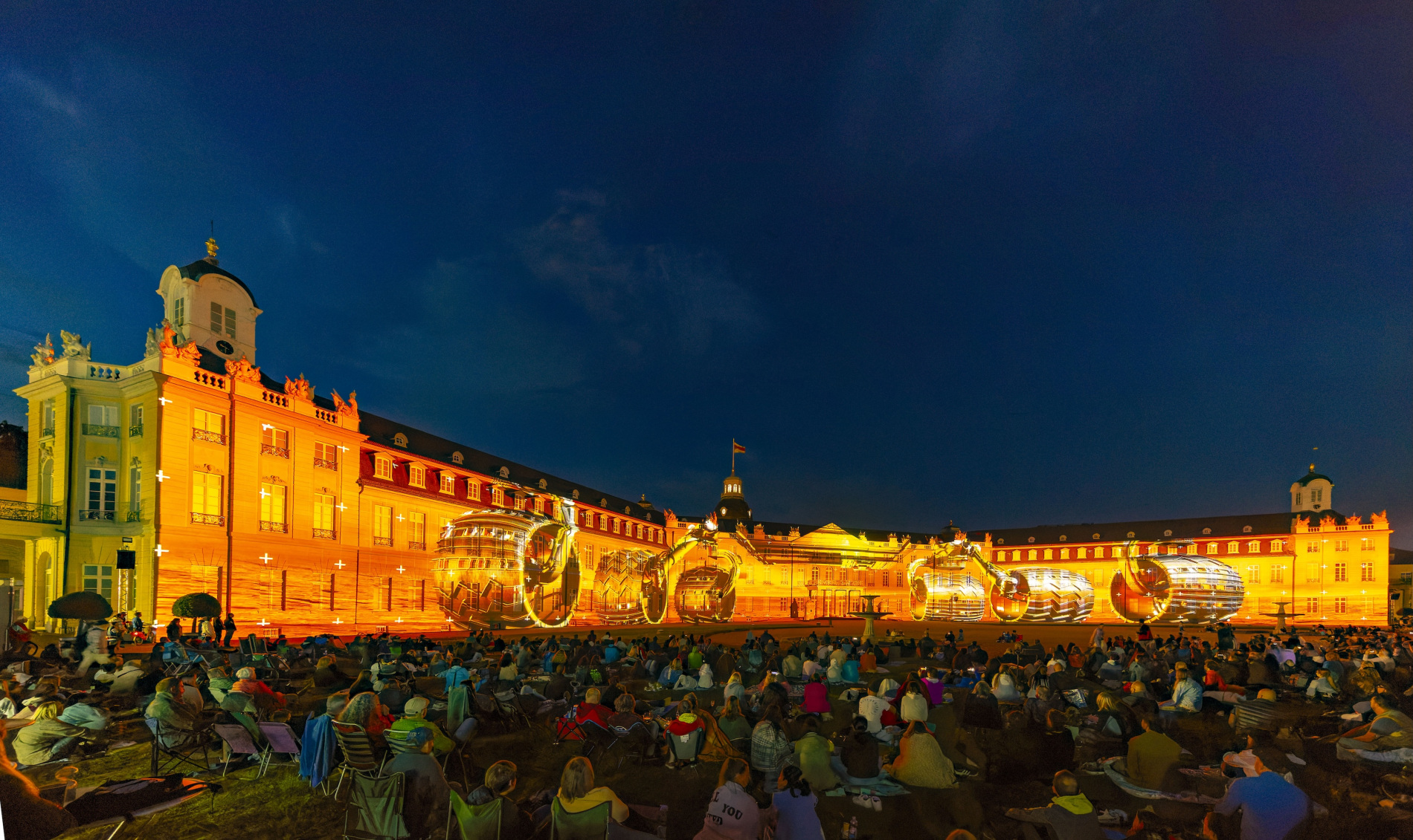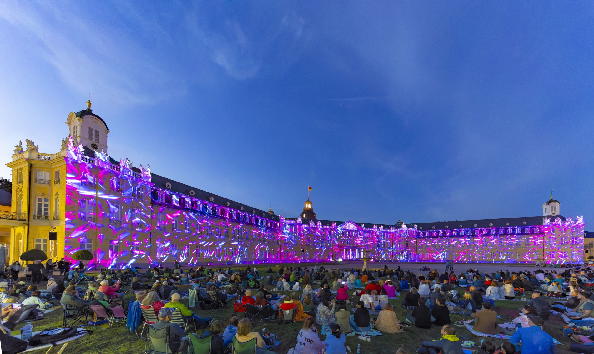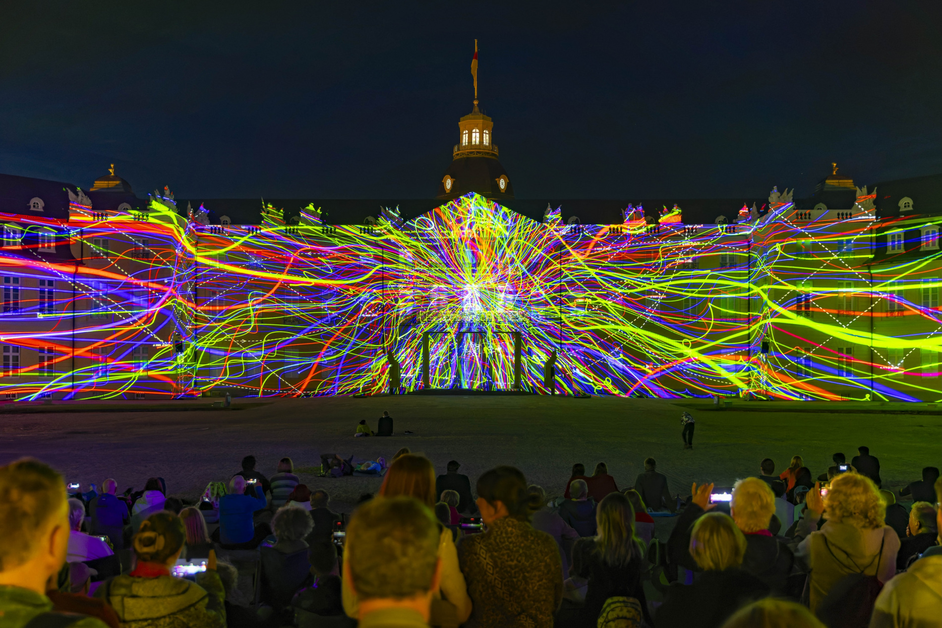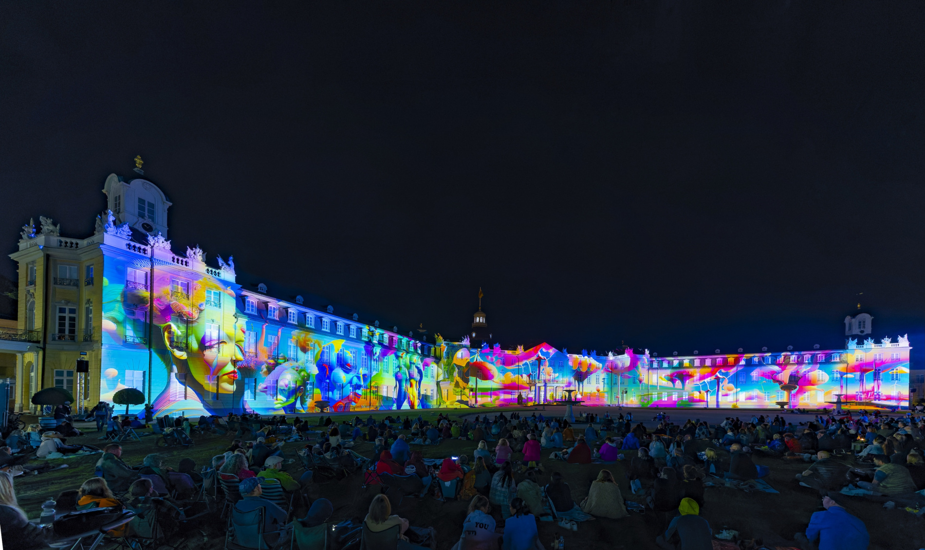 Die SCHLOSSLICHTSPIELE Karlsruhe kehrten in diesem Jahr zum 10. Mal auf die barocke Fassade des Karlsruher Schlosses zurück und verwandelten sie in ein digitales Kunstwerk für zahlreiche Besucherinnen und Besucher aus aller Welt. Zum 75. Geburtstag des deutschen Grundgesetzes widmeten sich die SCHLOSSLICHTSPIELE unter dem übergreifenden Motto „Everybody counts“. Jede, beziehungsweise jeder, zählt, inhaltlich den Themen Recht und Demokratie. Die SCHLOSSLICHTSPIELE Karlsruhe fanden 2015 zum 300. Stadtgeburtstag erstmals statt und begeistern seitdem jeden Sommer internationales Publikum. Schon über zwei Millionen Menschen haben das Kunsterlebnis auf der 170 Meter langen barocken Schlossfassade besucht.